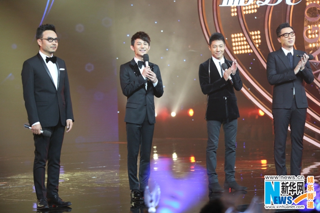 电视盛宴的舞台上,自然少不了观众喜爱的主持人。本届金鹰节开幕式邀请到了包括朱军、撒贝宁、何炅、汪涵、谢娜、华少等主持人在内的业界明星,还精心为被谢娜笑称为“主持F4”的撒贝宁、汪涵、何炅、华少设计了一个斗嘴环节。每个人挑一个礼物结合金鹰奖现场开讲祝福金鹰节,华少挑到了仙人掌,用坚韧和希望来诠释金鹰奖,撒贝宁抽到了一只鸭子,机智回答:“这只鸭子长大了就是一只金鹰。”何炅抽到了一双筷子,联想到“一根筷子容易折断,一双筷子不易折断,现场发表一段“筷子论”,何炅说:“中国电视人应该多多交流,多多融合,整个中国电视界更加团结的话,将会带来更多好的节目,受益的会是我们观众。”最后抽礼物的汪涵抽到了“无”,盒子里什么都没有,汪涵灵思妙想立刻从无到有,联想到传统媒体遭受新媒体冲击到时刻保持警醒和新媒体融合,从一个空空的箱子联系到新兴媒体和传统电视的融合传播,,联系到大小屏幕的多屏合一,这种代表传统媒体展现出来的拥抱姿态,立刻在网络上引起众多媒体人的回应和感想。随后,主持F4还联袂演唱《凡人歌》,为观众传递欢乐和感动。