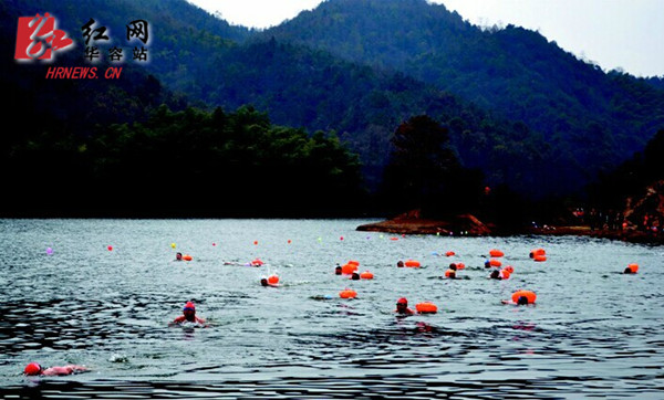 华容新闻网12月15日讯(记者 蔡建业)12月14日,岳阳市首届冬泳大赛在华容县东山镇佛寺水库举行。全市76名冬泳爱好者同场竞技。市人大常委会副主任余炳锐出席活动。